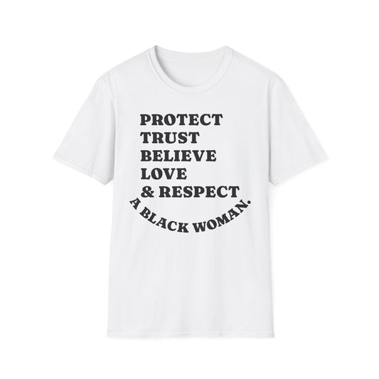 T-Shirt: Protect, Trust, Believe, Love & Respect A Black Woman